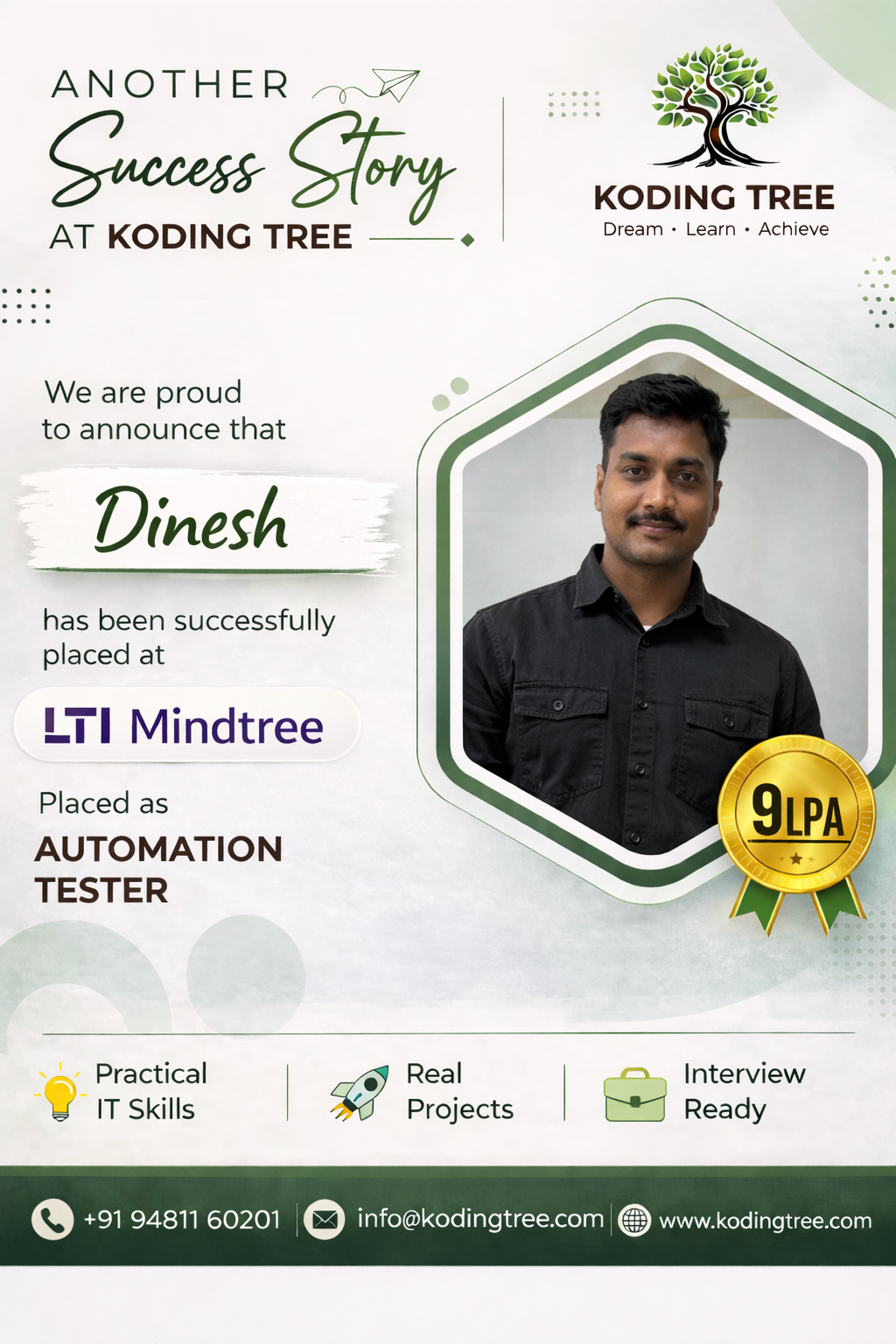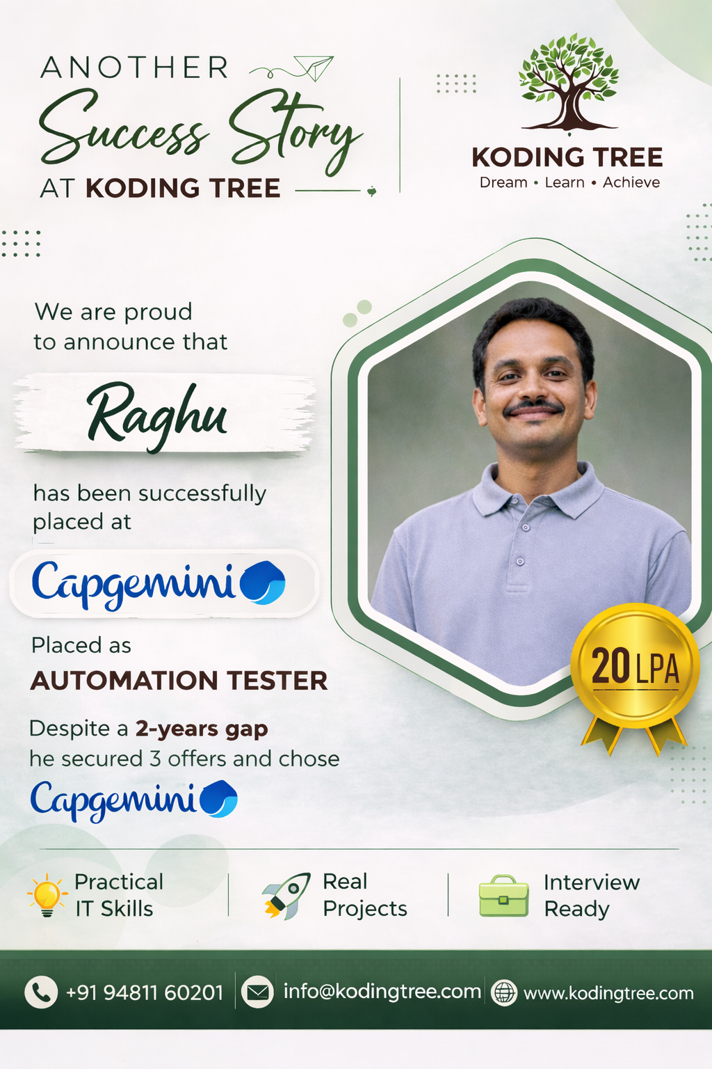 The Selenium Automation Testing course at Koding Tree helped me get placed at Infosys as a QA Engineer within one month of completing the training. The hands-on projects were exactly what interviewers asked about!