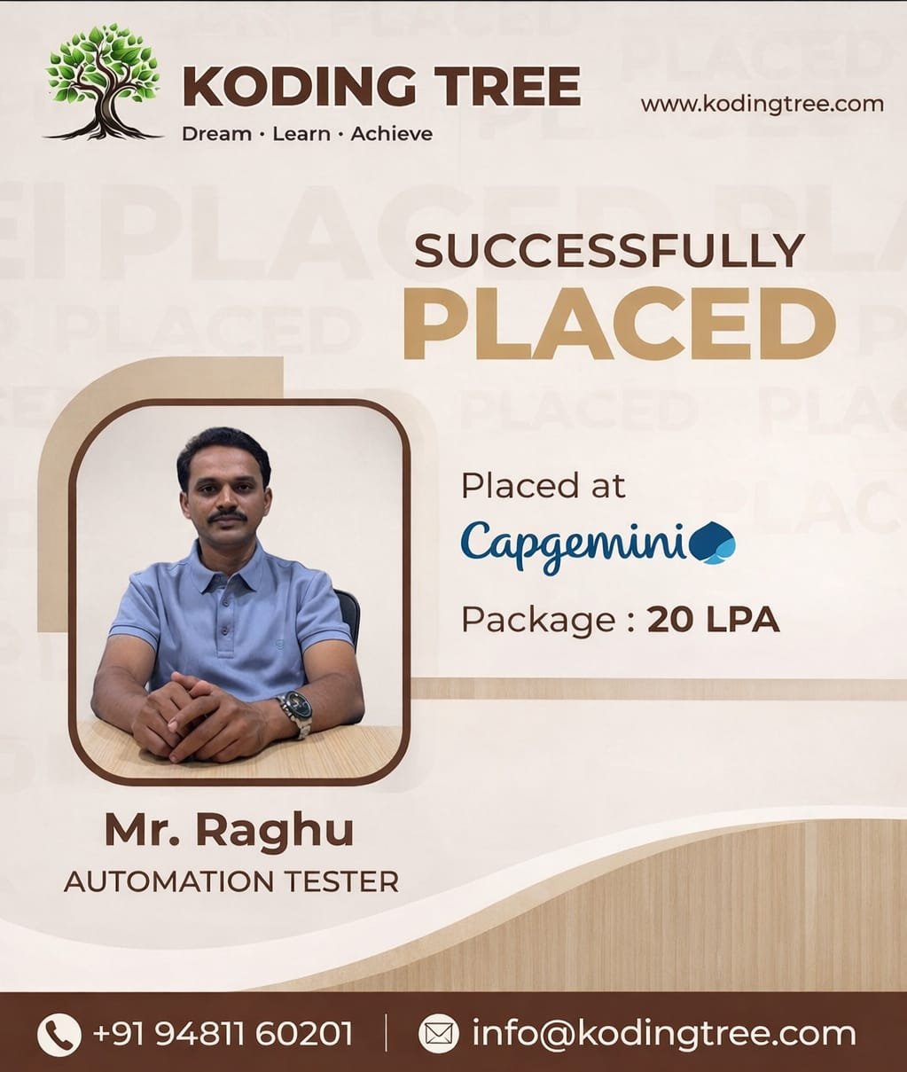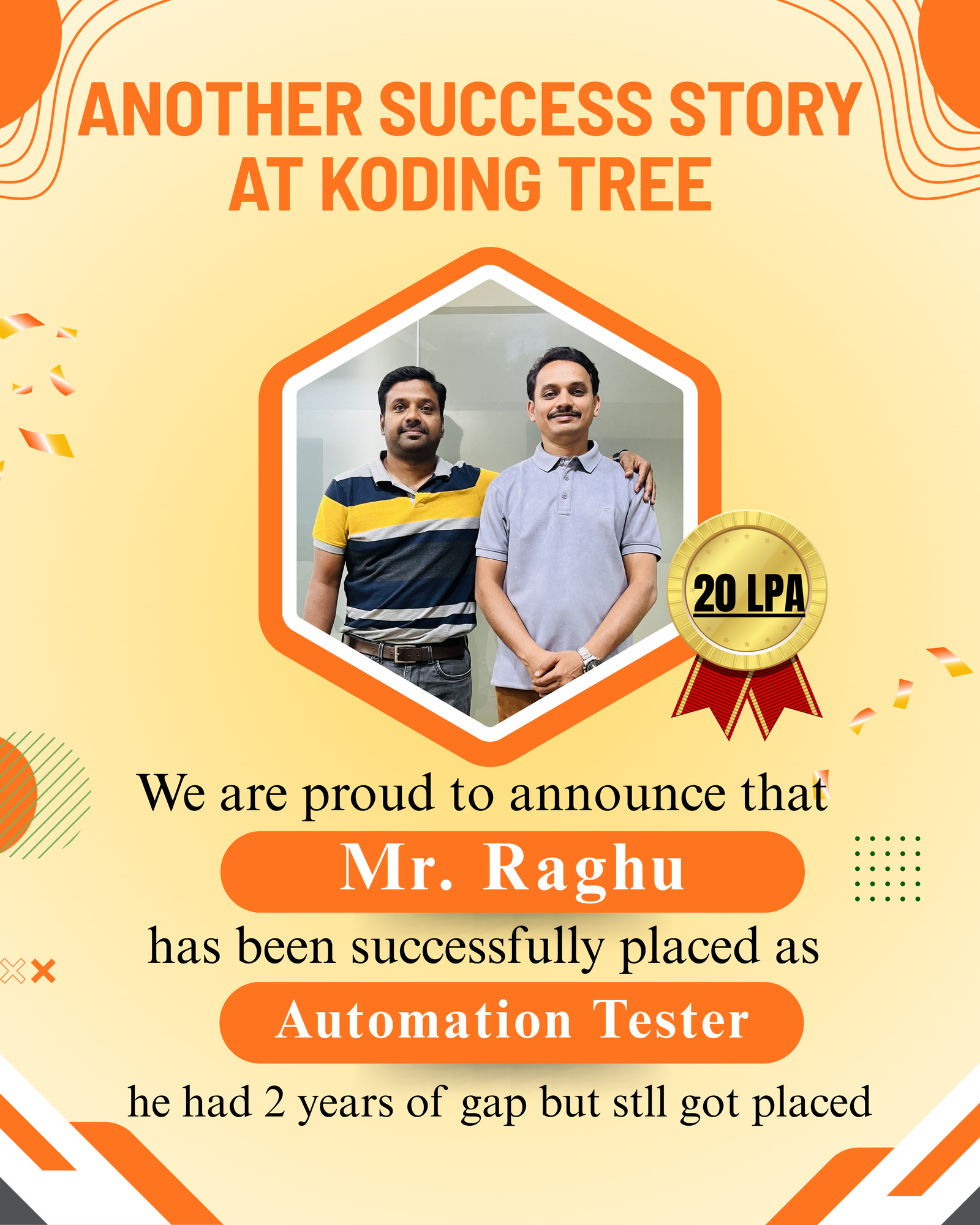 KodingTree completely changed my career. The Selenium course was hands-on from day one, and the placement team got me an interview within 2 weeks of completing the course!